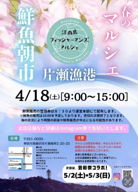 江の島フィッシャーマンズマルシェ|2026年4月18日(土)片瀬漁港で鮮魚朝市と春のマルシェを開催